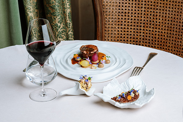 Une cuisine généreuse, élégante et précise. Ce Chef passionné aime particulièrement allier des saveurs traditionnelles parfaitement équilibrées à des combinaisons créatives à travers des produits locaux et de saison. Il porte de l’importance au fait que le goût doit toujours être en harmonie avec l’esthétisme des assiettes.